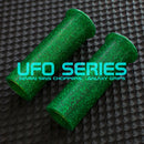 What sets these grips apart from the rest is that they are heavily flaked in actual colored Metal Flake. The UFO series only comes in ultimate saturation of colored flake embedded in clear rubber. These grips are absolutely beautiful and have an incredible reflective shimmer and are extremely brilliant in color. Although the grips are heavily flaked; you can still slightly see through them to your handlebar. The thicker the grips the harder it is to see-through. When it comes to customized rubber grips; this is the top of the line.
