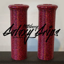 Seven Sins Choppers "GALAXY GRIPS" TM are a throw back to the sixties chopper scene. These super sparkle metal-flake grips are made from high quality durable, semi-flexible, UV resistant rubber and fully ribbed for your gripping pleasure. The Galaxy Grips™ come in a plethora of custom colors in solids and semi-transparent configurations.These are a super cool way to finish off your custom or stock bars. Handmade in the USA with pride. Please contact us if you need a certain color that is not in our catalog