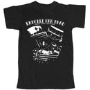 The image is printed on your choice or front or back on a high quality black t-shirt with premium based inks.