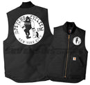 The PSYCHO CYCLES INC. WORKER MECHANIC VEST is made of cotton duck and insulated for warmth.
