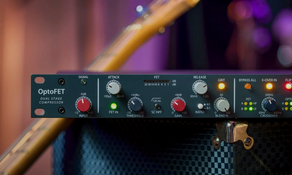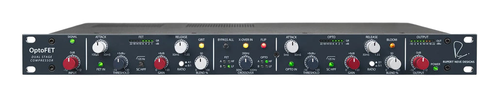 There are two primary compression modes: in Dual-Stage mode, the FET and OPTO compressors are used in series for complete dynamic control over critical sources, accomplishing a common recording & mixing technique with ease. In Dual-Band mode, each compressor is assigned to either a low or high frequency band that can then be processed independently, which expands the tone-shaping and dynamic control of the OptoFET into uncharted territory.