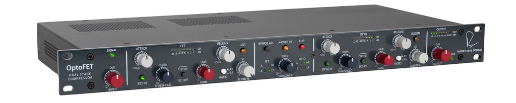 For many years, the engineering team at RND has experimented with FET compressor designs – but it wasn’t until the OptoFET concept was solidified that releasing our first FET circuit felt ‘right’. While this FET compressor has some familiar characteristics, including ultra-fast attack times and common ratio settings, there are also several features that make it instantly feel like a Rupert Neve Designs product and nothing else.